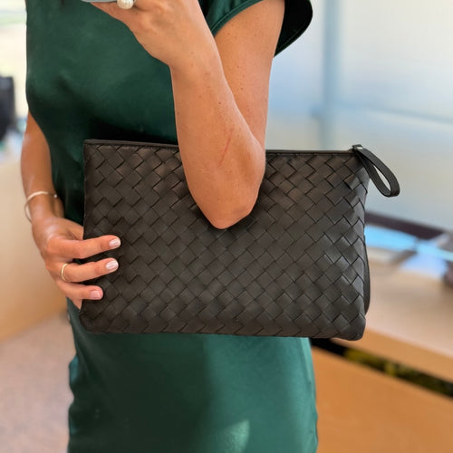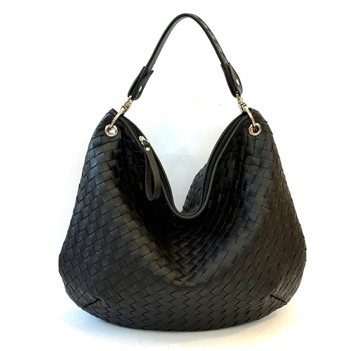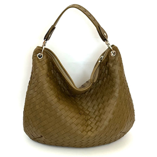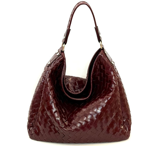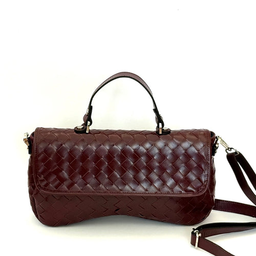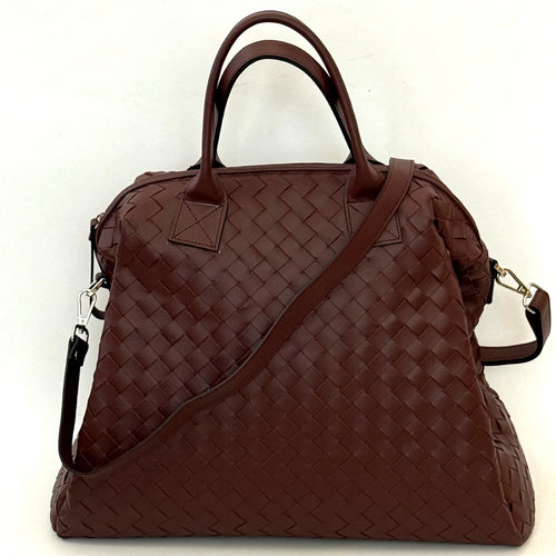 Borsa a due manici con tracolla in pelle intrecciata a mano