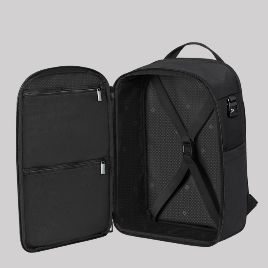 Samsonite bagaglio da sotto al sedile in tessuto, misure cm 40 x 25 x 20. Vano porta pc 14,1" imbottito anti urto. Spallacci ergonomici, tasca porta bottiglie.