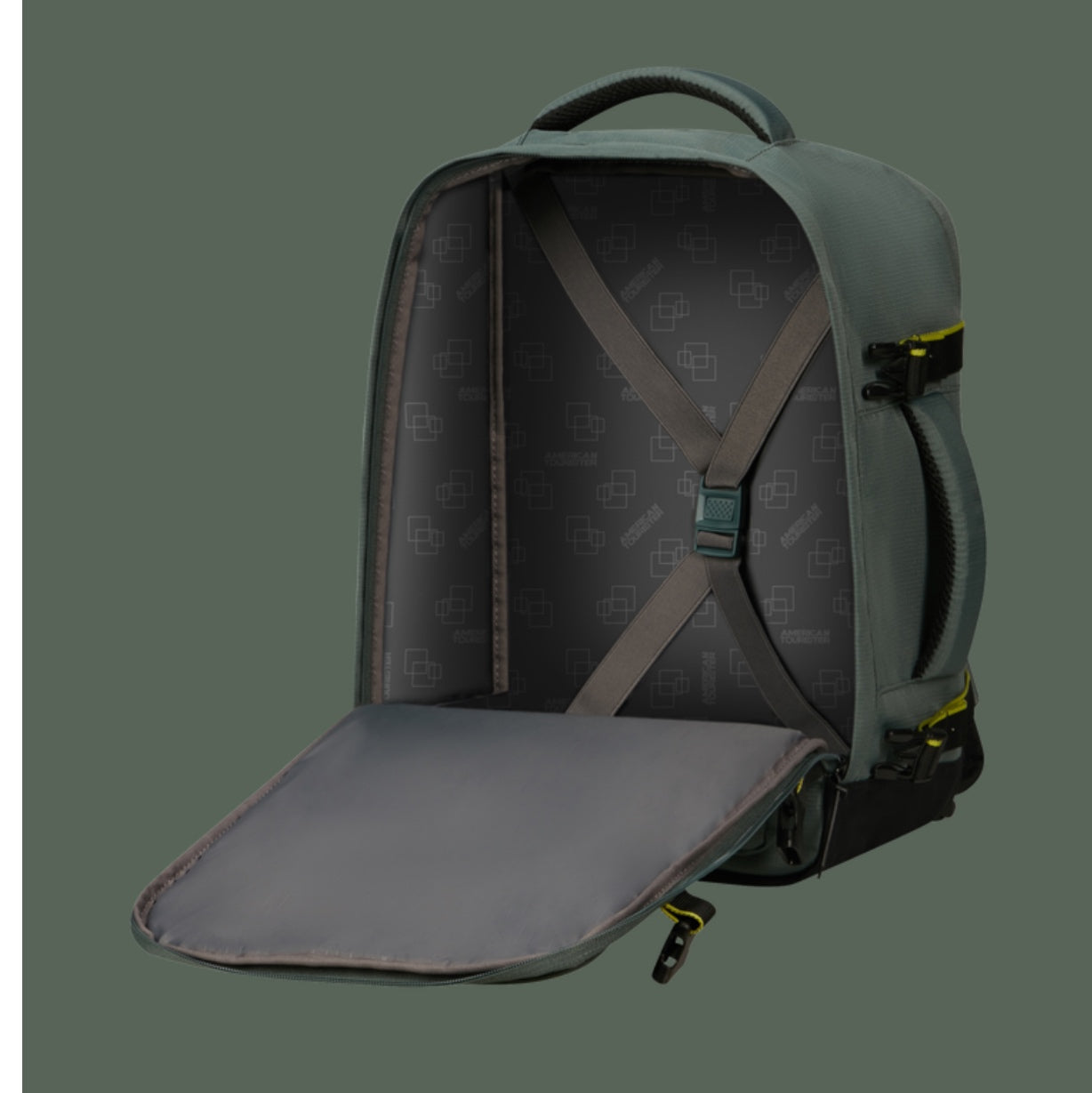 American Tourister bagaglio da sotto il sedile misure cm 40 x 30 x 20. Dotato di una tasca frontale, interno con cinghia ferma abiti.