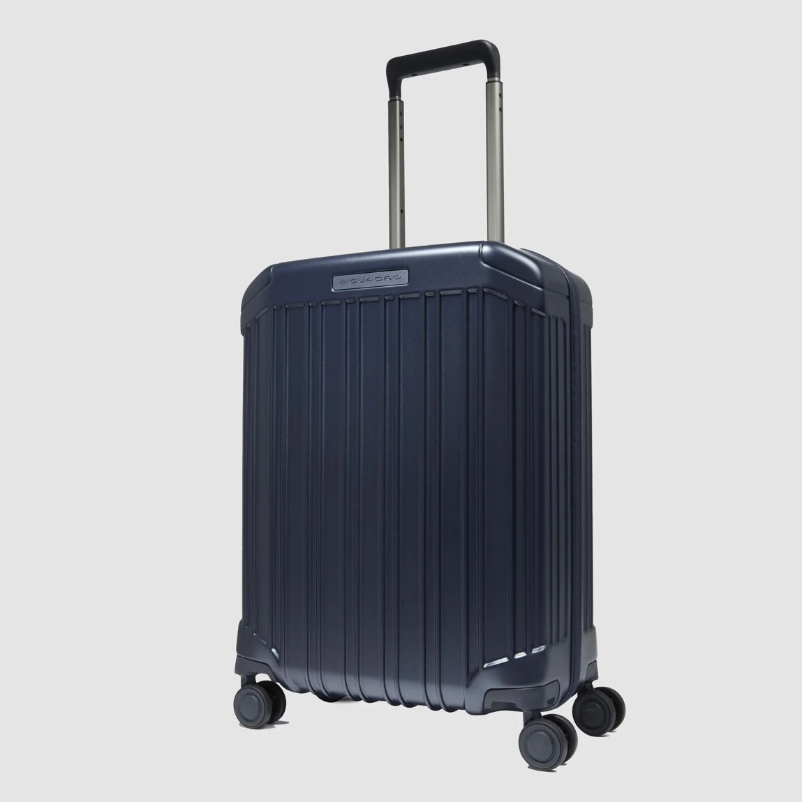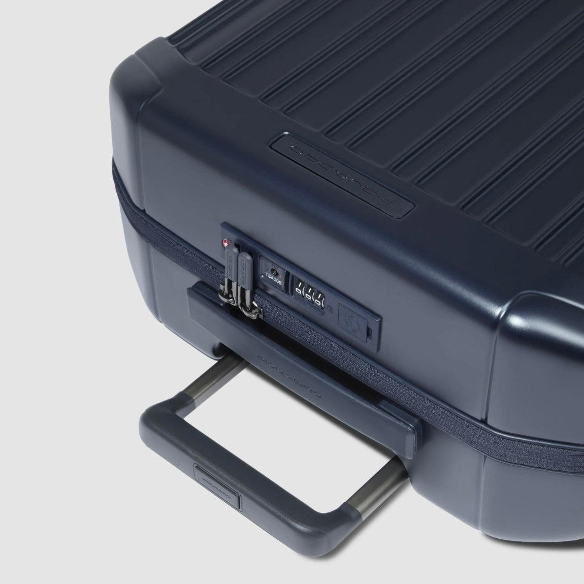 Piquadro, Trolley da cabina a 4 ruote con chiusura con combinazione, chiusura TSA, porta USB e USB type C. Fodera interna rimovibile e lavabile.