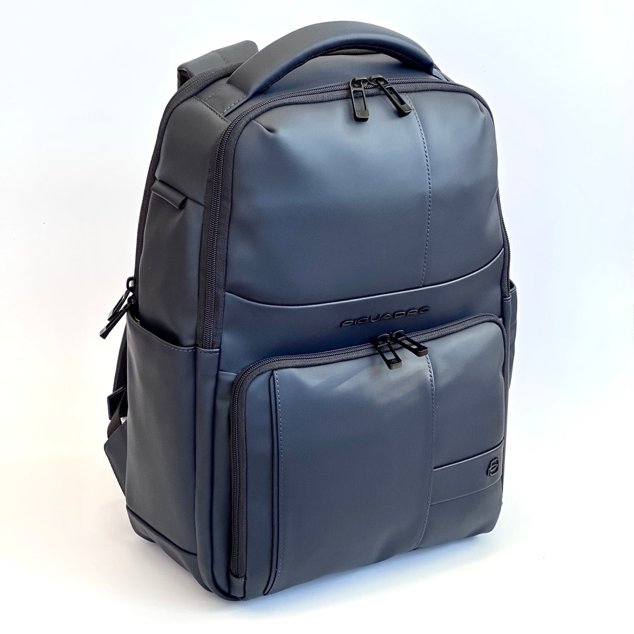 Piquadro zaino in tessuto gommato porta PC 14" . Dotato di vano porta computer e tasca porta iPad con protezione anti urto.